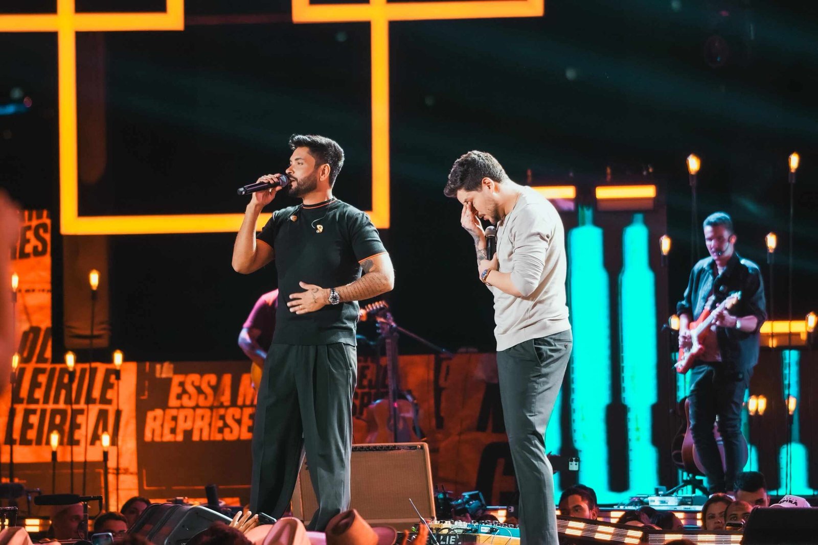 “Nós nunca imaginamos que um dia estaríamos em um lugar tão lindo e com tantas pessoas querendo ouvir a dupla Fred & Fabrício. Vocês não imaginam como é estar aqui em cima e ver até onde chegamos”, declarou Fabrício no palco.